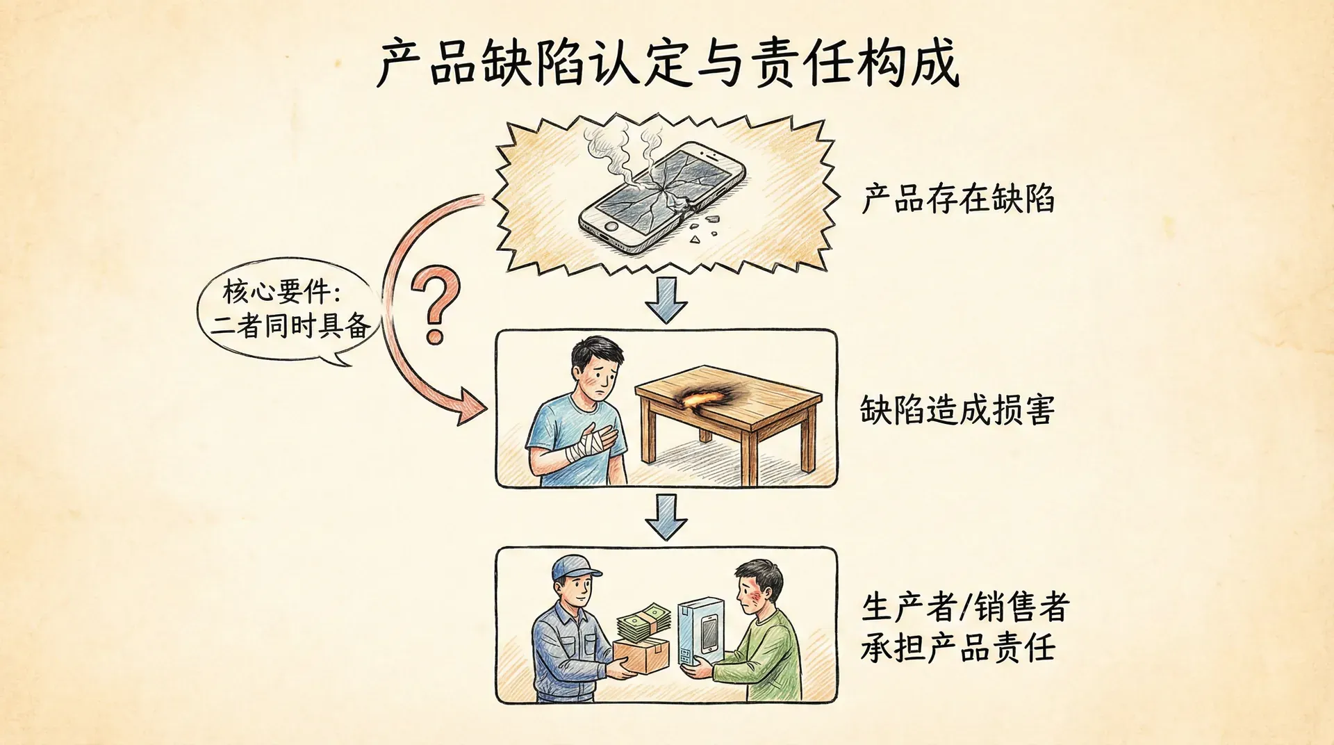 产品缺陷是产品责任的核心要件。只有当产品存在缺陷,并且该缺陷造成了损害,生产者或销售者才需要承担产品责任。