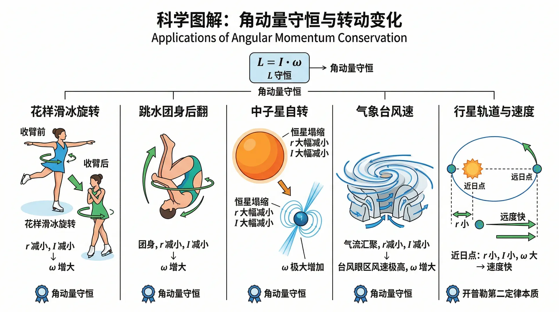 如果系统转动惯量发生变化(例如质量分布改变),角速度会相应改变,以保持 不变: