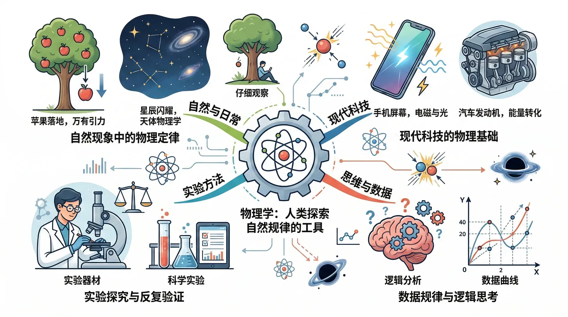 物理学研究的是自然界中物质的运动规律、能量的转化与传递,以及物质之间相互作用的基本规律。它是所有自然科学的基础,也是工程技术发展的核心支撑。