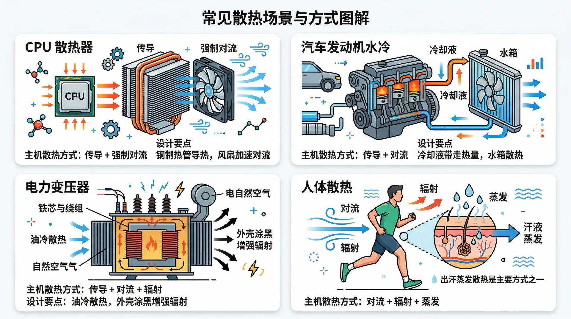 保温和散热虽然目的相反,但物理原理一致:都是控制热传导、对流和辐射三种传热方式的速率。保温就是减慢这三种传热,散热就是加快这三种传热。掌握了热传递的原理,就理解了家电、建筑、服装等众多设计背后的逻辑。