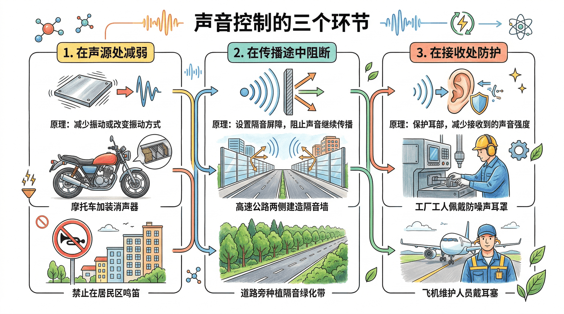 控制噪声可以从声音传播的三个不同环节入手: