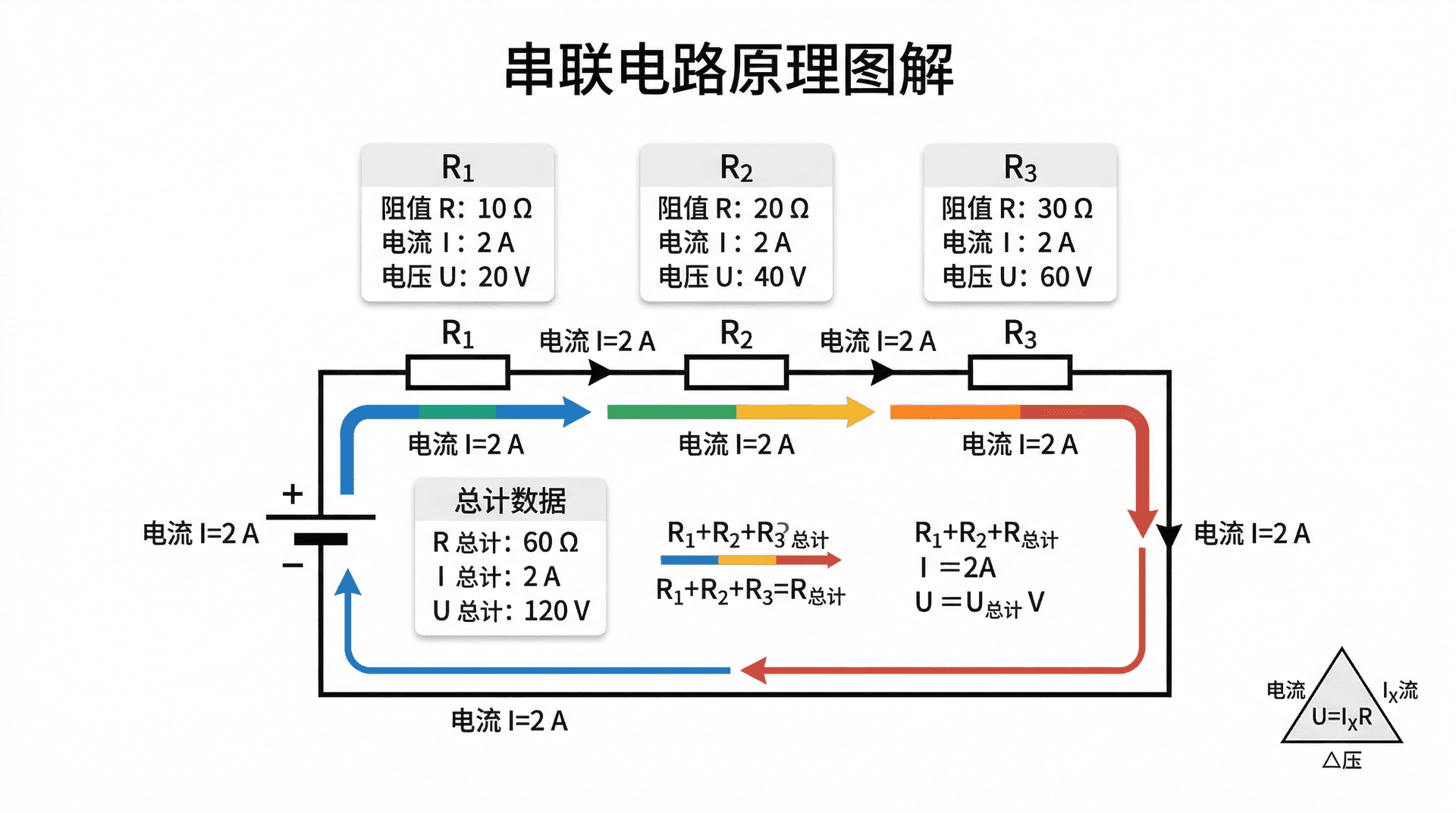 并联电路的总电阻一定小于其中任意一个支路电阻。支路越多,总电阻越小,干路电流越大。这也是为什么同时使用过多大功率电器会导致干路过载的原因。