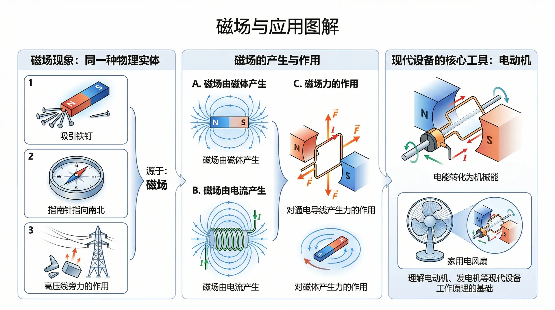 理解磁场,不仅能解释自然界中许多令人惊奇的现象,更是理解电动机、发电机等现代设备工作原理的基础。从家用电风扇到工厂的大型机器,凡是需要将电能转化为机械能的设备,都离不开磁场对电流的作用。