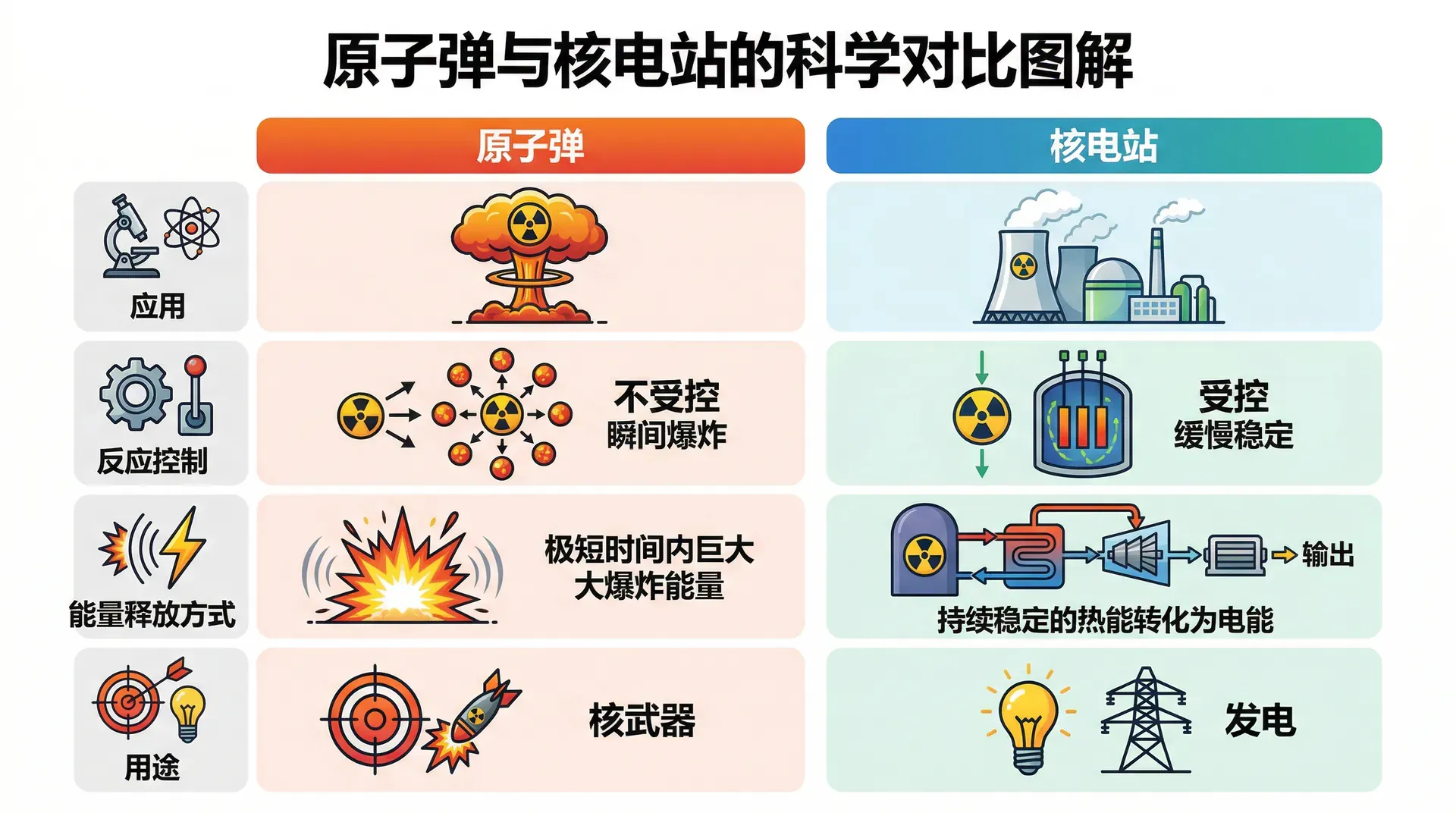 核电站利用核裂变释放的热能,将水加热为高压蒸汽,推动汽轮机旋转,带动发电机发电。整个过程与火力发电类似,区别在于热源不是燃烧化石燃料,而是核反应堆中的链式裂变反应。