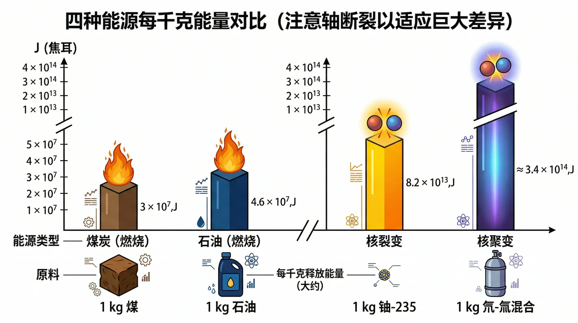 各种能源的能量密度对比:
