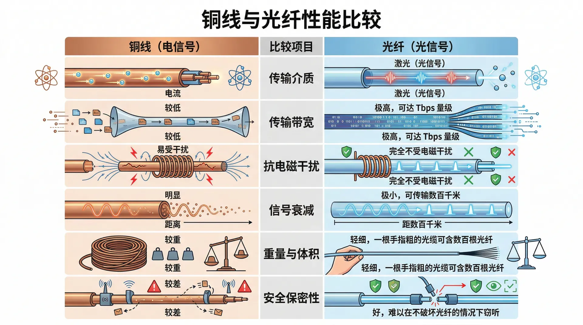 光纤通信与传统铜线通信的对比: