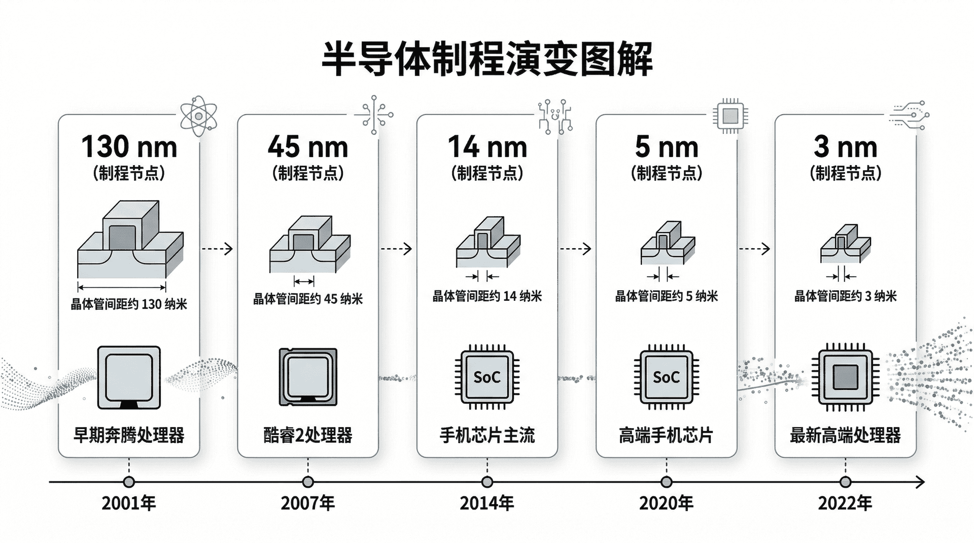 相邻晶体管间距不足百纳米,仅为人类头发直径的千分之一。