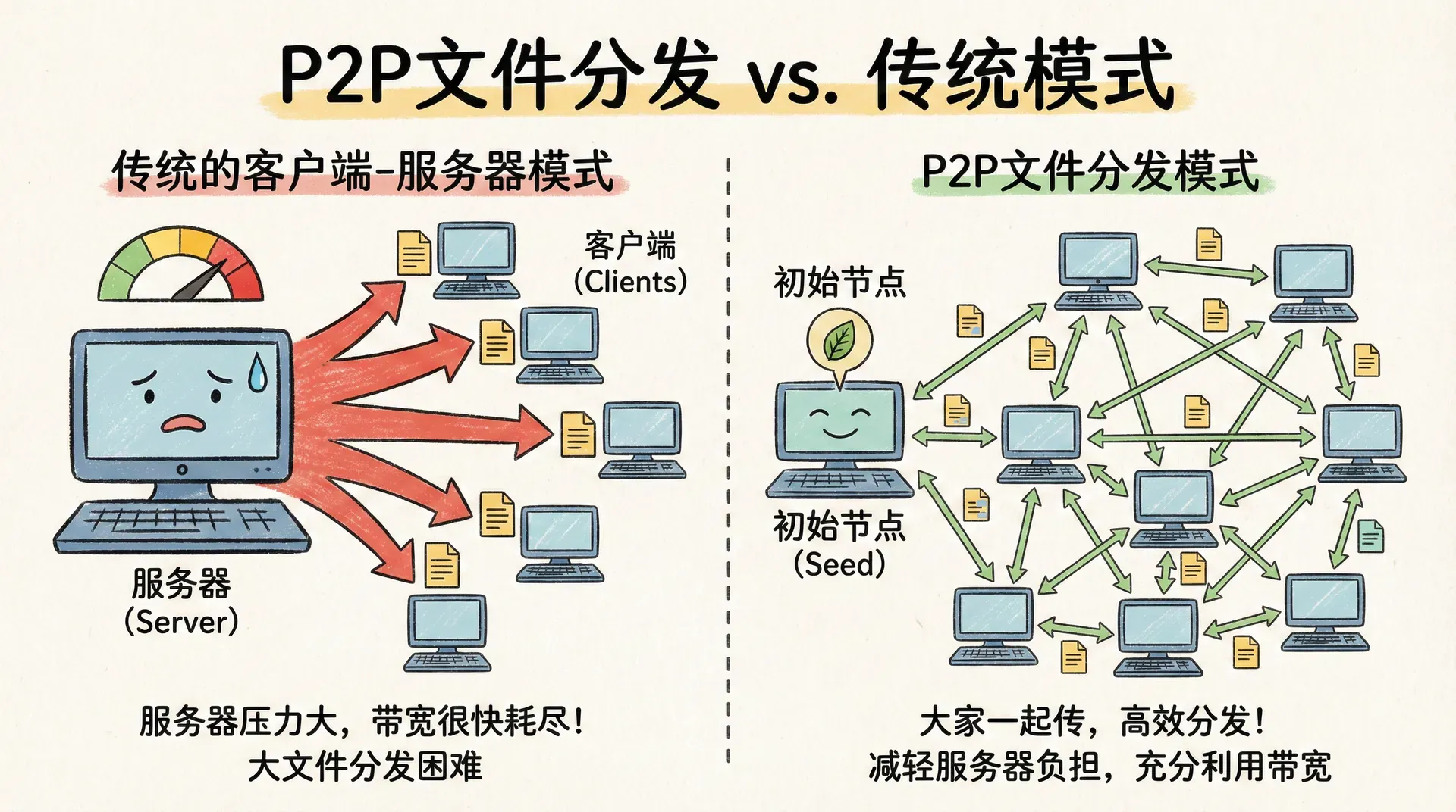 在P2P架构下,每个对等体既可以作为服务的请求方,也可以作为服务的提供方,实现资源的共享与协作。以BitTorrent为代表的文件共享系统就是典型的P2P应用场景。 通过这种架构,系统能够充分利用网络中各节点的计算和带宽资源,实现高效的数据分发和弹性扩展。