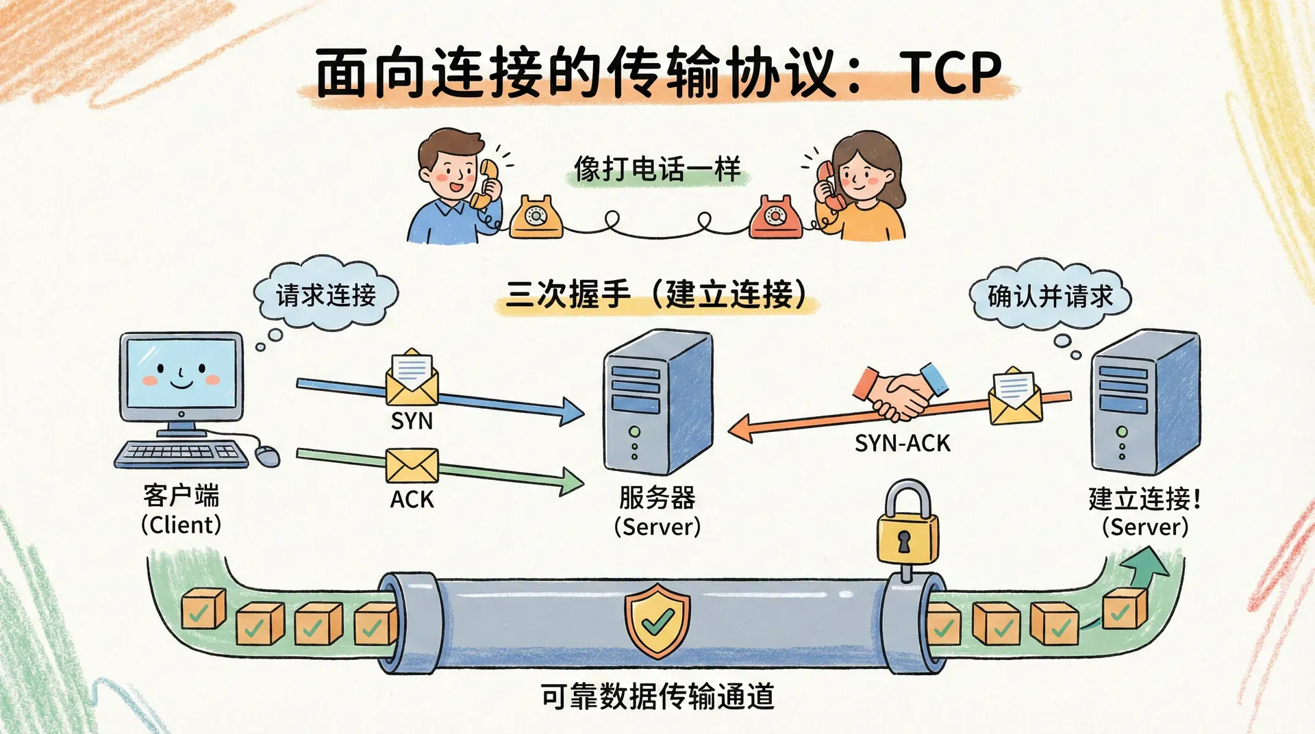 如果电话线路足够理想——没有杂音、不会断线、信号稳定——那整个沟通过程就会非常顺畅。但现实的网络环境远比这复杂,数据包在传输过程中可能会丢失、损坏,甚至顺序被打乱,这就需要更专业的机制来保障数据的可靠送达。