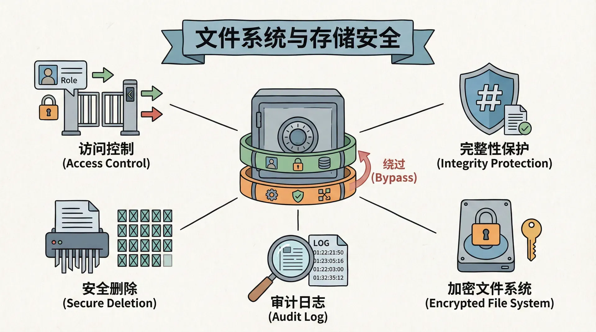 这一部分我们将讨论文件访问控制、文件完整性保护、安全删除、审计日志、加密文件系统等核心概念。