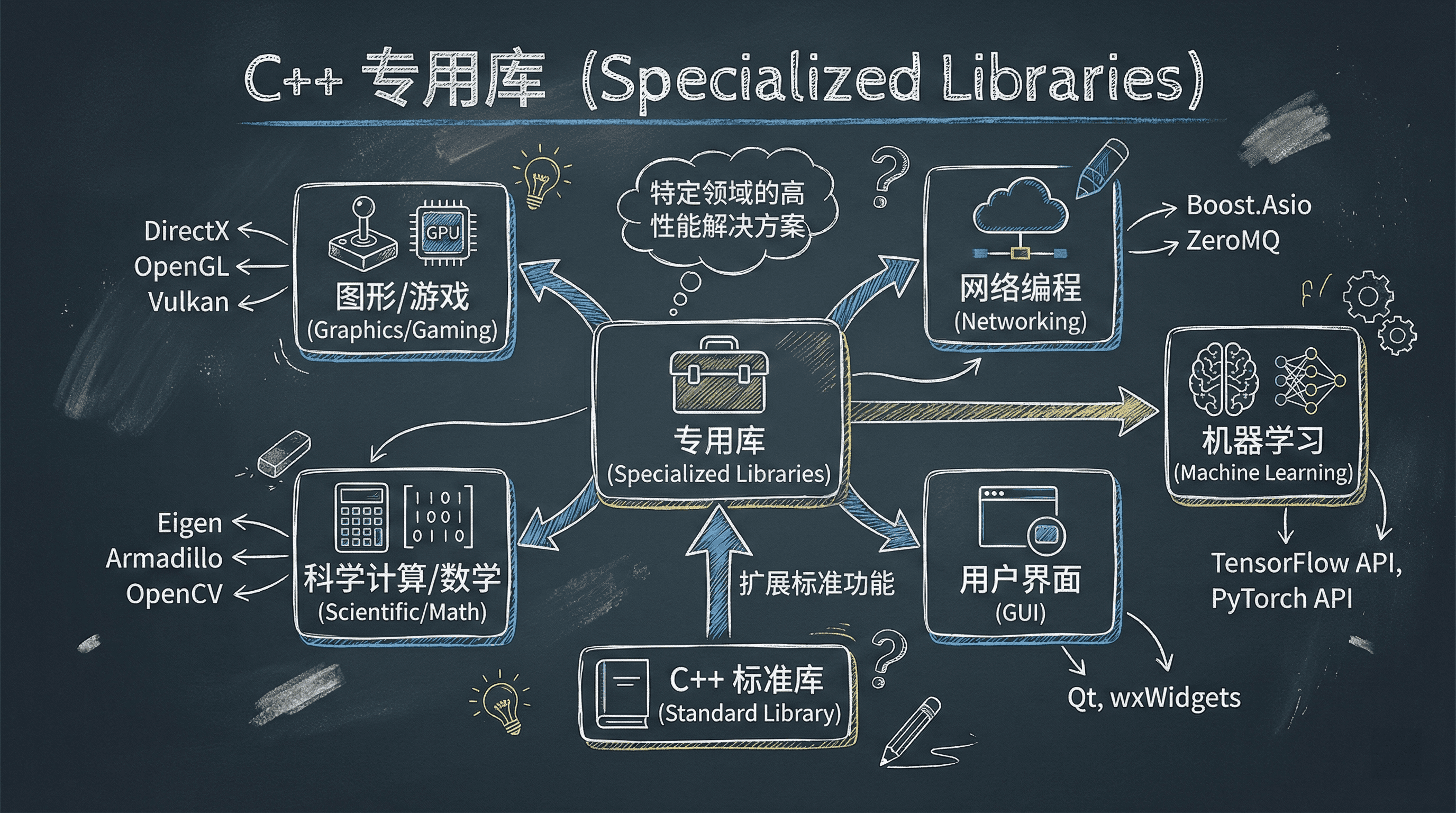 在我们的C++学习旅程中,到目前为止已经接触了大部分核心语言特性。然而,真正让C++强大的是其丰富的标准库。标准库占据了C++标准文档近三分之二的内容,这足以说明其重要性。 虽然我们无法深入讲解每一个库,但有一些专用的库组件在许多应用中都很有用,值得我们深入了解。