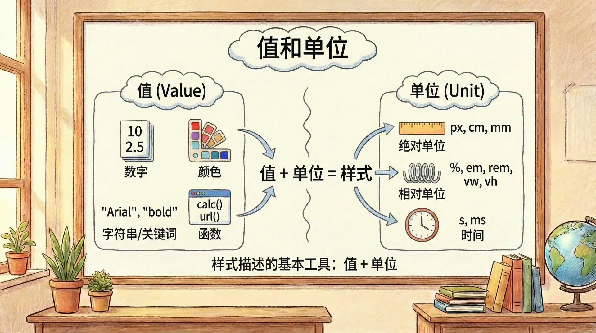 在CSS中,“数值”这件事就像我们日常生活中的数字:量身高、算面积、调整比例都离不开它。CSS用数值来表达元素的大小(比如宽和高)、位置、缩放、透明度……可以说只要和“多少”有关的地方,都少不了数值的参与。