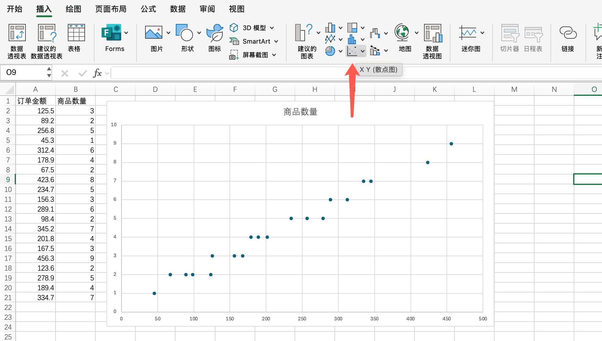 在Excel中创建散点图很简单。我们选中包含两个数值列的数据区域,然后在"插入"选项卡中选择"散点图"。Excel会自动生成散点图,我们还可以添加趋势线来更清晰地展示变量之间的关系。