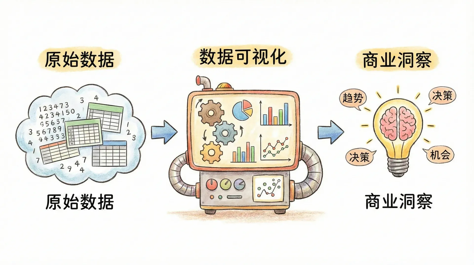 数据分析的结果需要通过某种方式呈现给他人,而数据可视化是最有效的方式之一。一个清晰、美观的可视化图表,比一页页的数字表格更容易让人理解和接受。在商业环境中,决策者往往没有时间仔细研究详细的数据报告,但他们可以通过图表快速把握关键信息。