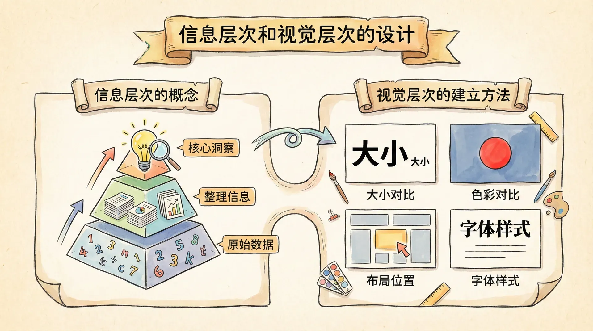 在数据可视化中,不同的信息具有不同的重要性。我们需要通过视觉设计来建立清晰的层次结构,让观众能够按照重要性顺序来浏览信息。