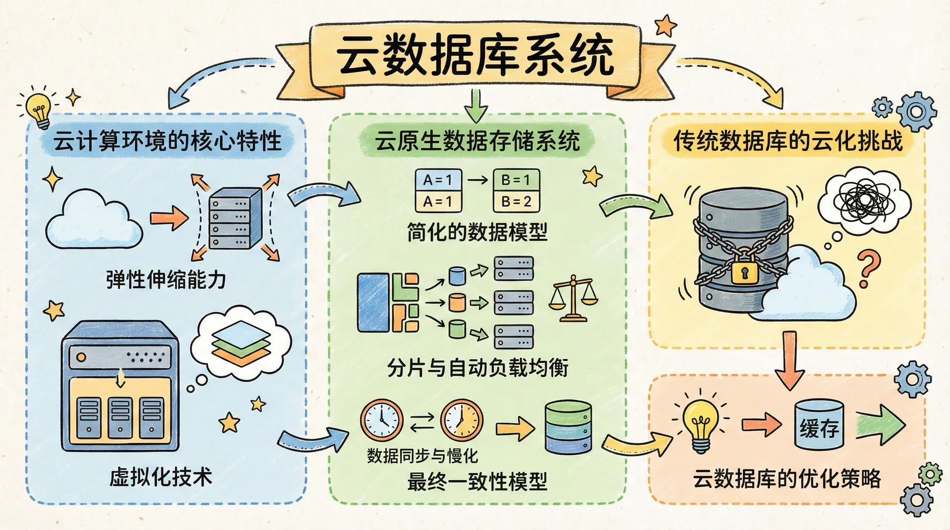 云计算的迅速发展为分布式数据库系统的演进带来了全新机遇与挑战。云数据库将数据库服务部署于云平台之上,用户可通过互联网实现对数据的访问与管理,无需关心底层物理基础设施的运维与管理。