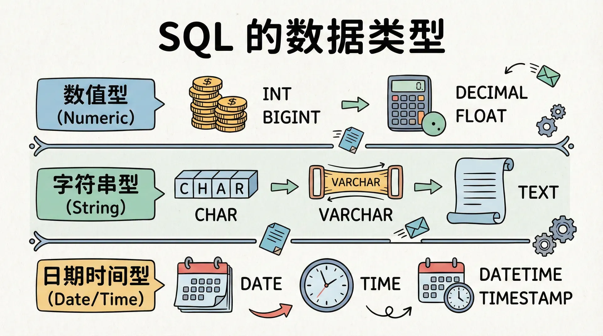 SQL 标准主要提供三种时间日期数据类型,每种类型适用于不同的业务场景: