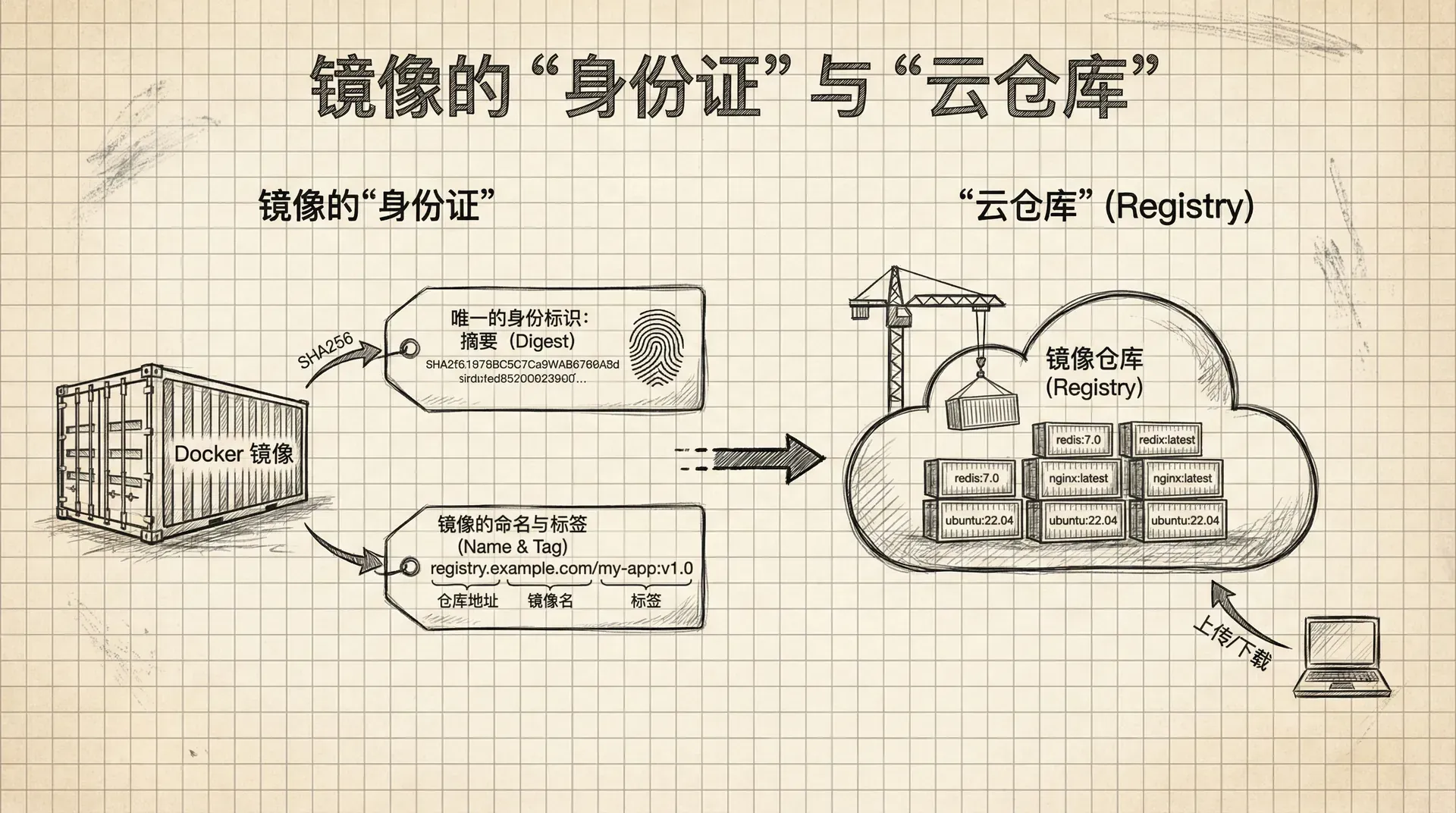 现在我们知道了镜像是什么,也了解了它的分层结构。那么,当我们要使用一个镜像时,该如何准确地找到并识别它呢?这就需要了解镜像的命名规则和存储方式。