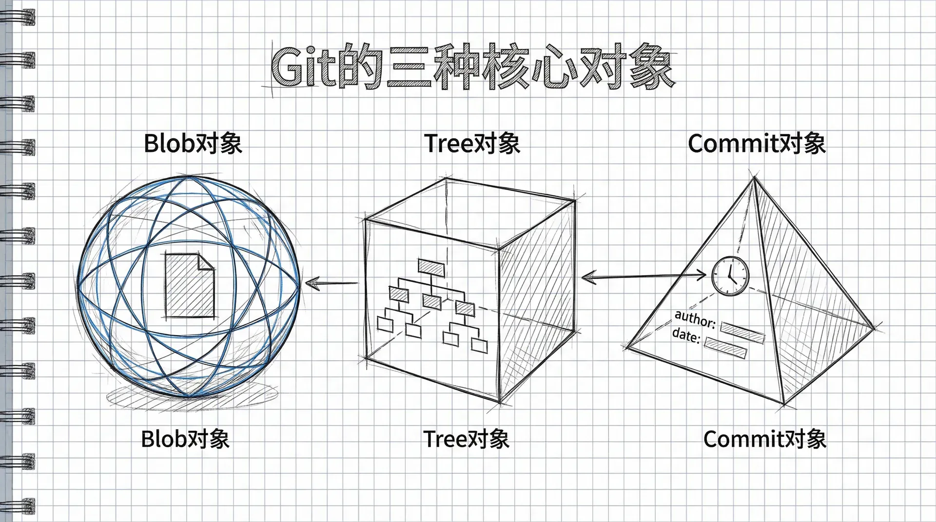 现在,让我们进入Git最核心的部分。Git的世界是由三种基本对象构建起来的,就像乐高积木一样,用这些简单的积木,Git可以构建出复杂的版本控制系统。