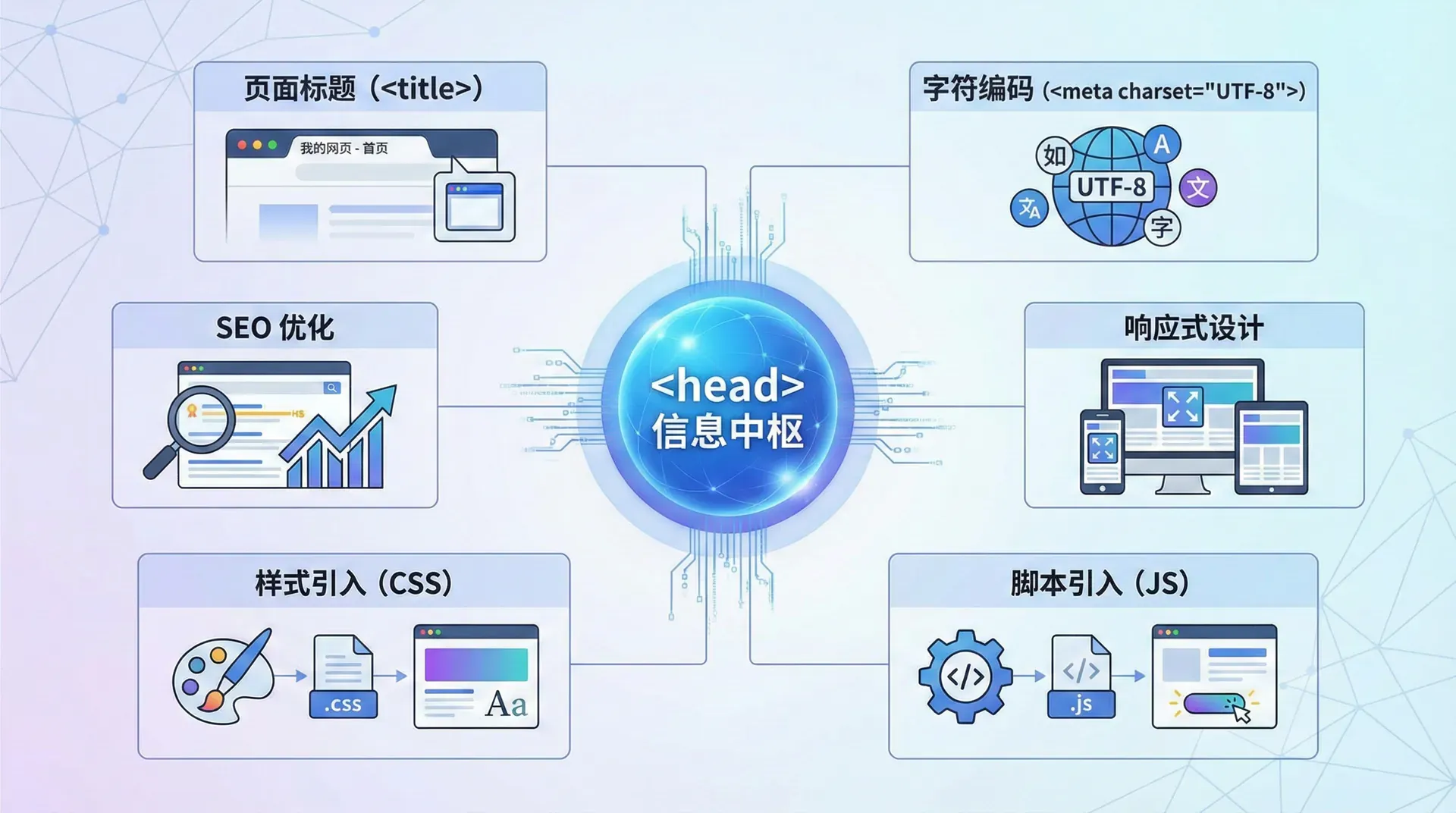 这些元素在实现网页的 SEO 优化、响应式设计、样式与脚本引入等方面发挥着不可或缺的作用,是保障网页正常展示与功能完整的重要基础。