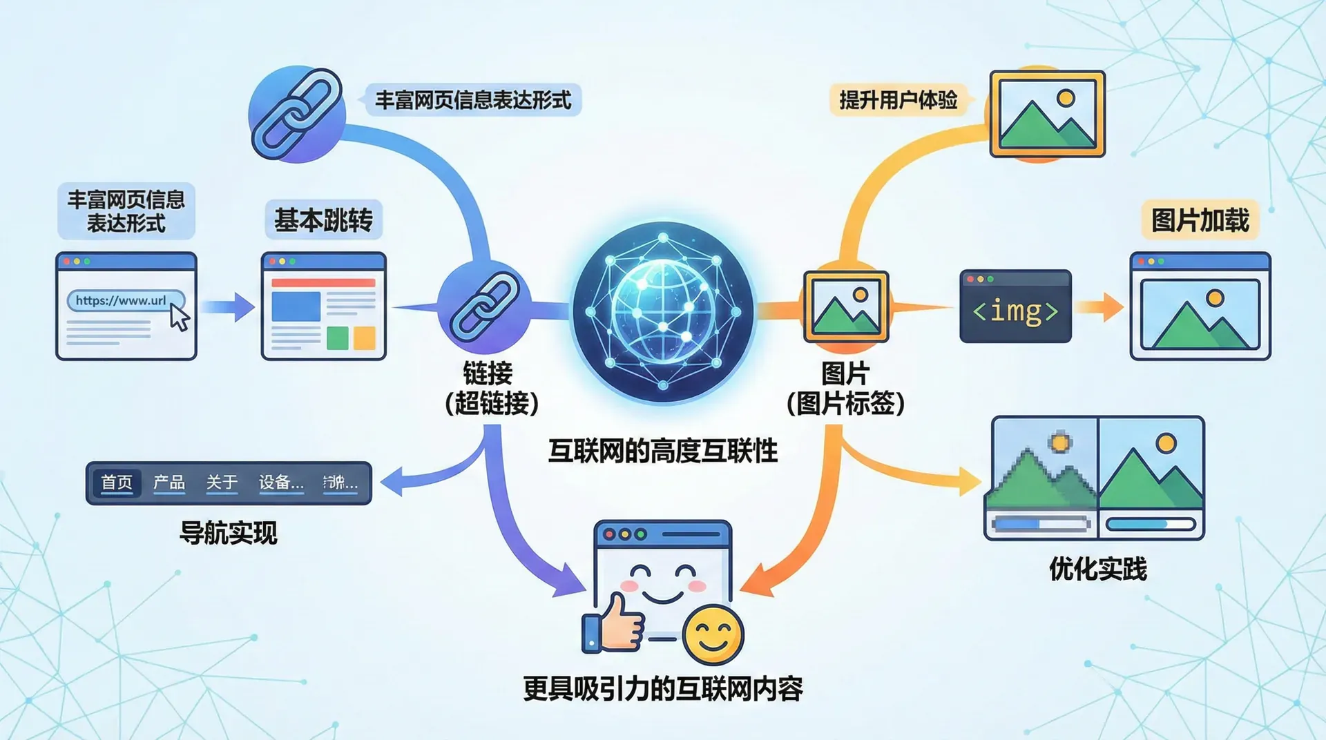 在上一部分中,我们系统性地介绍了文本标签,为网页内容填充打下了基础。然而,互联网的核心价值在于其高度互联性。掌握链接与图片标签的专业用法,不仅能极大丰富网页的信息表达形式,还能提升整体的用户体验和页面交互性。