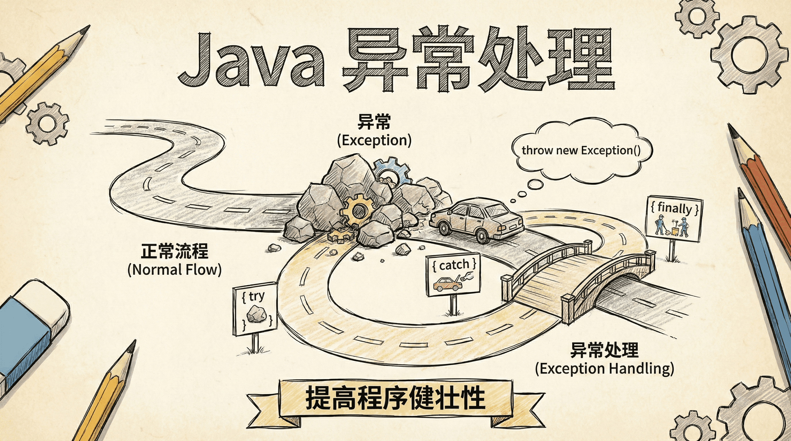 在Java中,异常(Exception)是指在程序运行过程中,由于错误或意外事件而自动生成的特殊对象。每当程序遇到无法正常处理的情况(比如除以零、数组越界、文件未找到等), Java运行时系统就会创建一个异常对象,并“抛出”这个对象。这个异常对象中包含了错误的类型、发生的位置以及相关的上下文信息。
