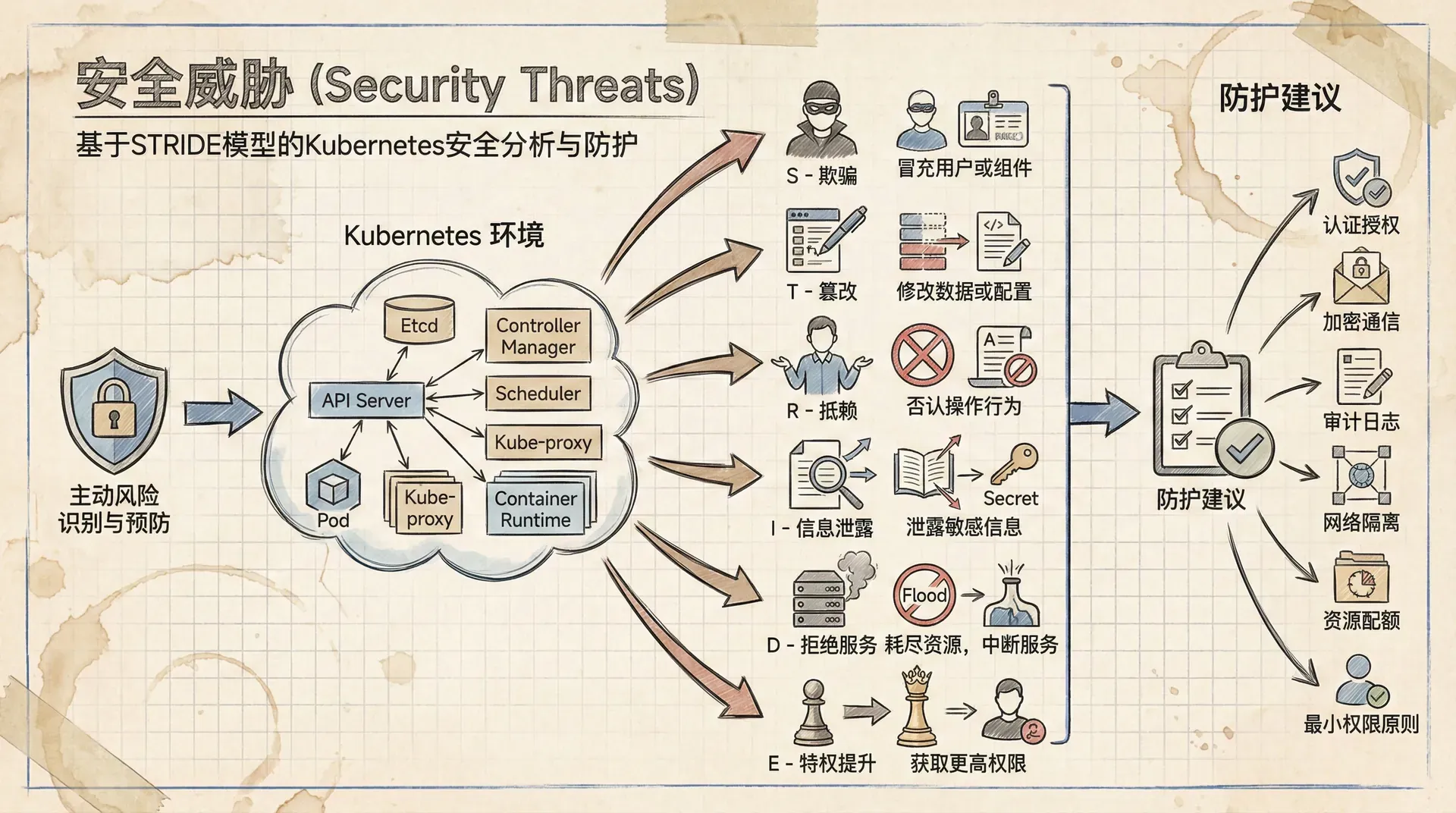 通过STRIDE模型,我们系统地审视了Kubernetes可能面临的各种威胁,并探讨了相应的防御策略。安全是一个持续的过程,需要我们在架构设计、应用开发和日常运维的每个环节都保持警惕。记住,构建一座坚固的城堡,需要我们像一个深谋远虑的建筑师一样,提前规划好每一道防线。
