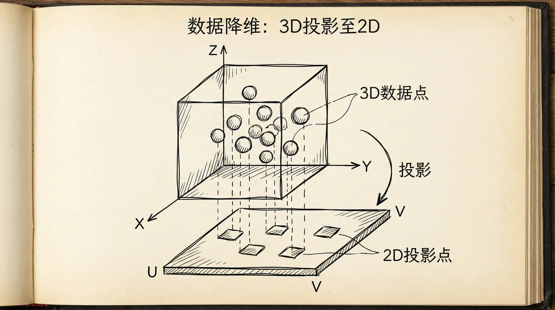 降维(Dimensionality Reduction)技术能够将高维数据映射到低维空间,同时尽可能保留数据的重要信息。降维不仅能加速算法、节省存储,更重要的是能够帮助我们理解数据的内在结构,发现数据中真正重要的模式。