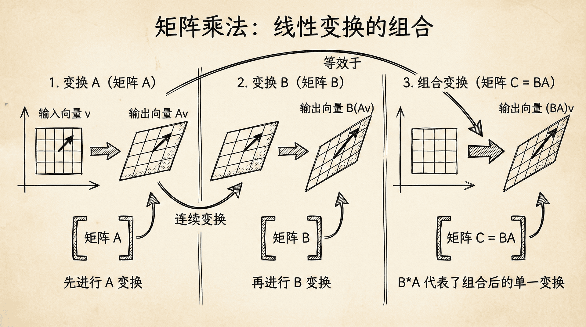 矩阵乘法是线性代数中最重要也最强大的运算。它在机器学习中无处不在,理解它是理解算法的关键。
