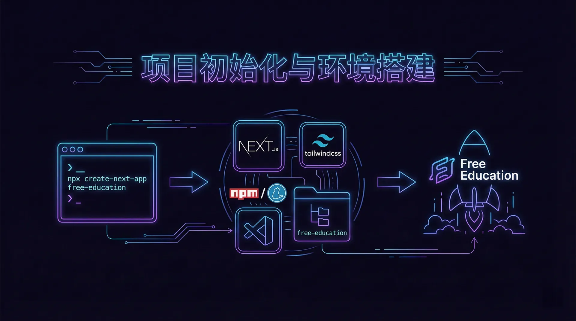 欢迎来到 Next.js 的学习!在这整个后续的学习中,我们将从零开始搭建一个名为 “Free Education” 的公司品牌网站。通过这个项目,你将学习到如何使用最新的 Next.js 和 Tailwind CSS 来构建现代化的 Web 应用!是不是很激动人心,废话不多说,我们直接开始!