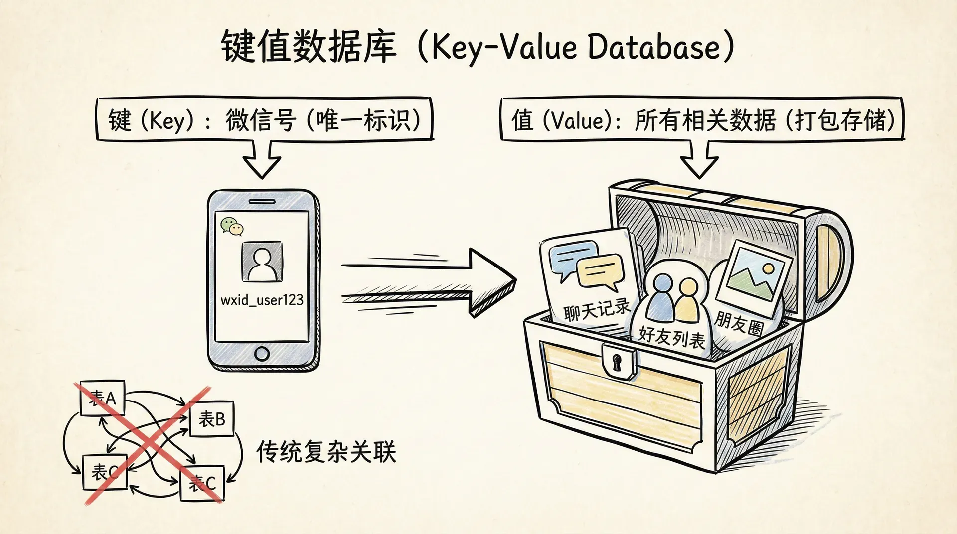 键值数据库就像一个超级庞大的字典,用简单的“钥匙-箱子”的思维方式来存储数据。它的核心魅力在于极致的简洁和速度:通过唯一的键就能瞬间定位到对应的数据,不需要复杂的表格关联或者SQL查询语法。这种设计让它在处理海量并发请求时表现出色,比如微信这样的应用需要快速响应数亿用户的即时操作。