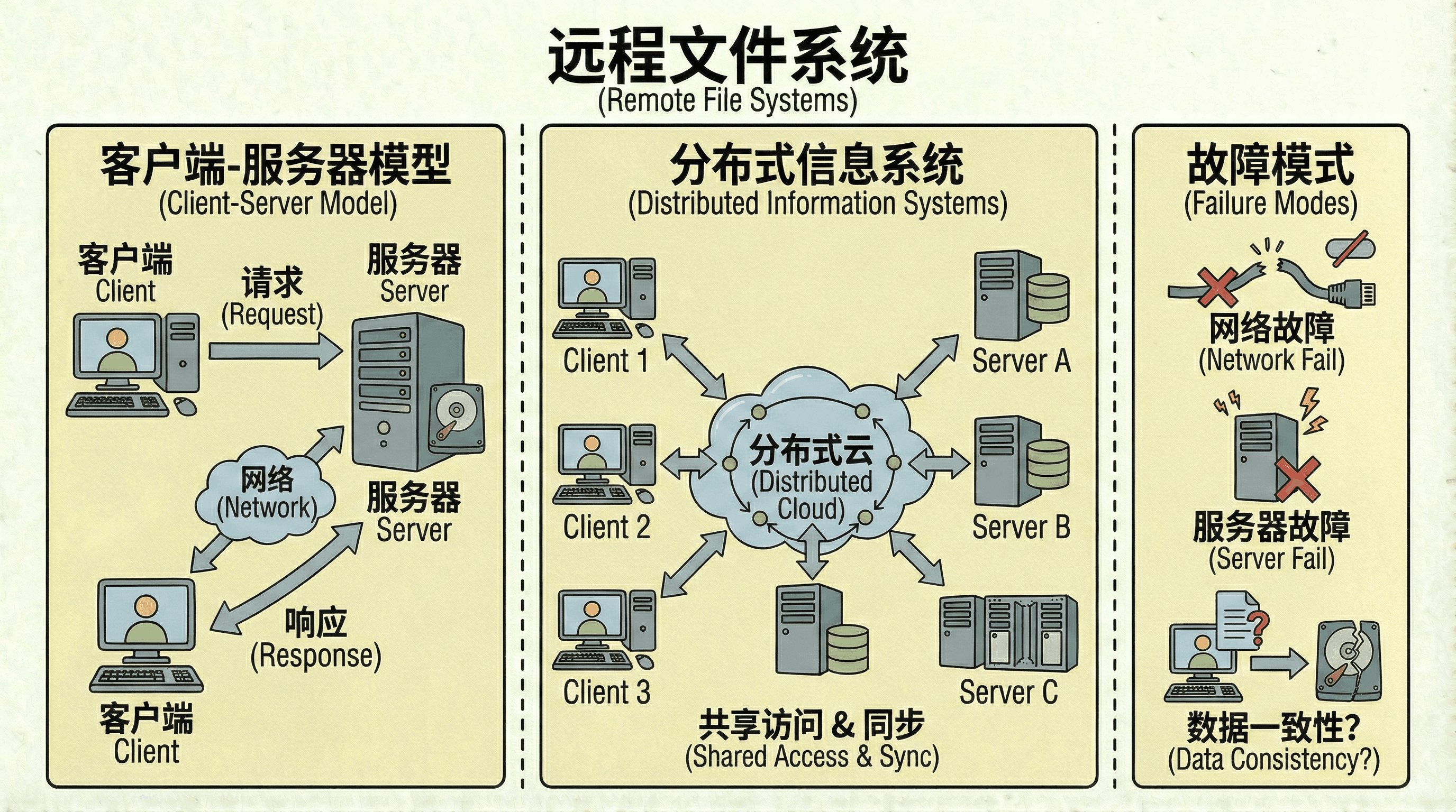 远程文件系统使得不同主机可以通过网络访问和共享文件资源。这种机制允许用户在一台主机上访问存储在另一台主机上的文件,就像访问本地文件一样。远程文件系统的发展经历了多个阶段,从早期的文件传输协议到现代的分布式文件系统。
