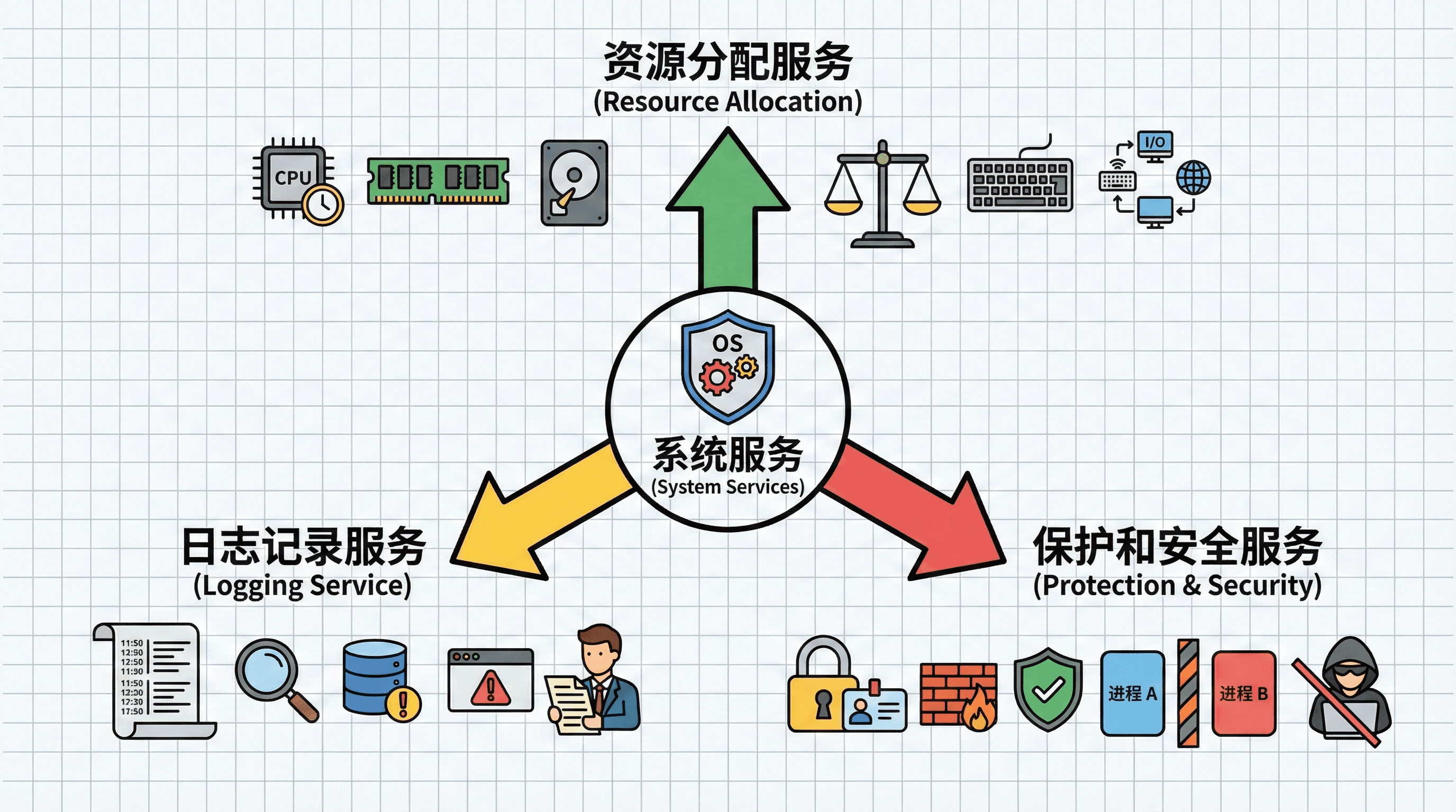 除了面向用户的服务,操作系统还需要提供系统级的服务来确保系统本身的高效运行和资源管理。