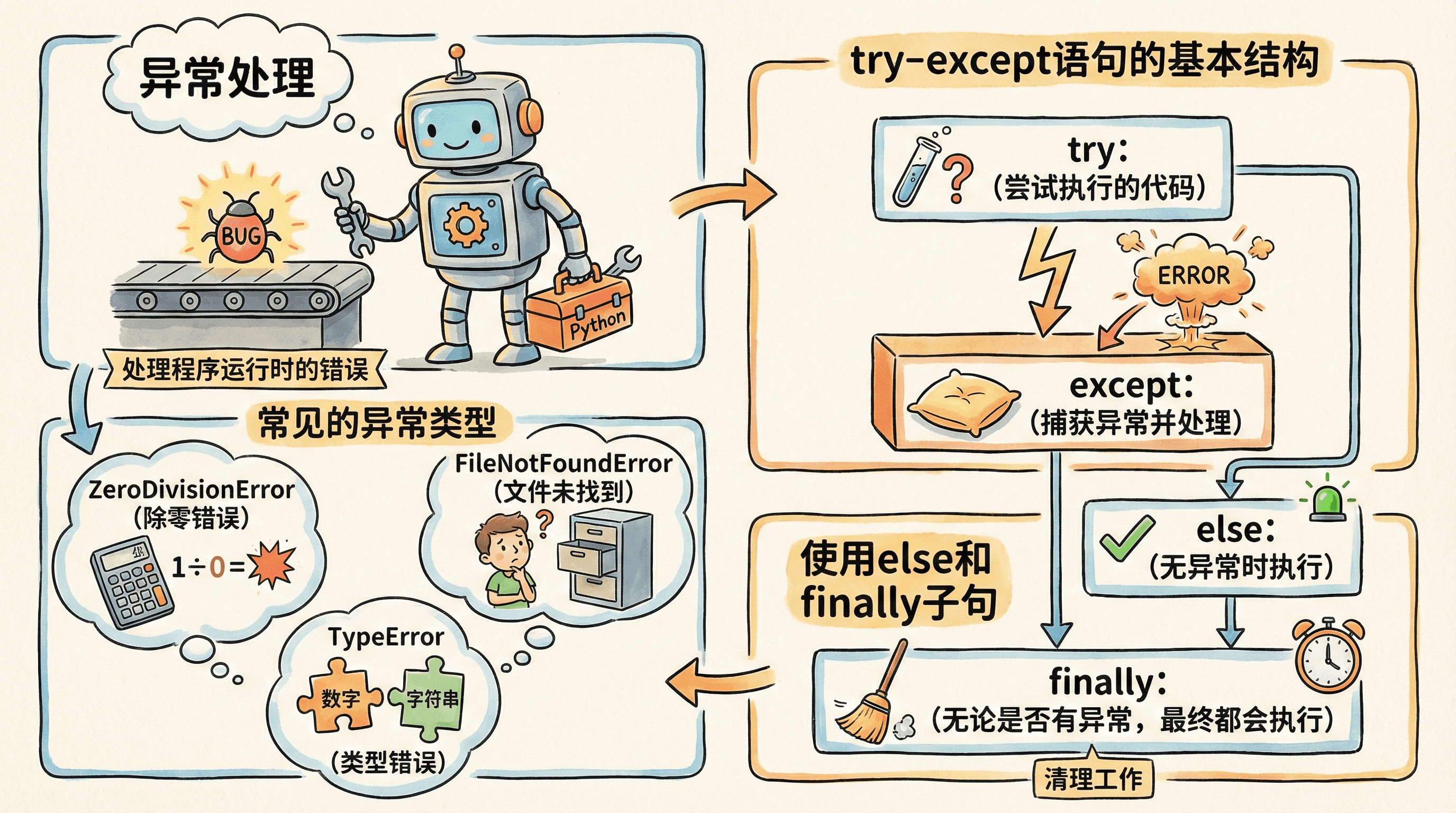 在现实世界中,程序不仅需要处理我们预先设定的完美数据,更要面对各种意外情况:文件可能不存在、用户可能输入错误的数据、网络连接可能中断。