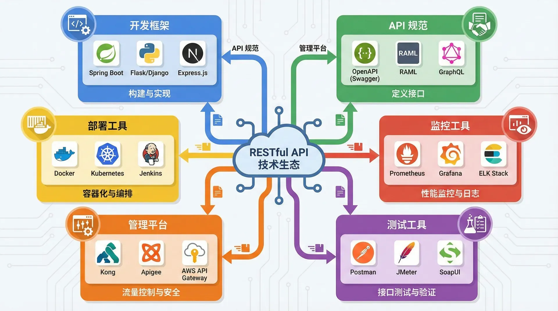 这一部分我们将全面介绍 RESTful API 开发的技术生态,从主流开发框架到 API 描述标准,从 API 管理平台到自动化工具链。 通过了解这些工具和标准,你可以选择合适的技术栈,构建高效的开发流程,提升 API 开发的质量和效率。