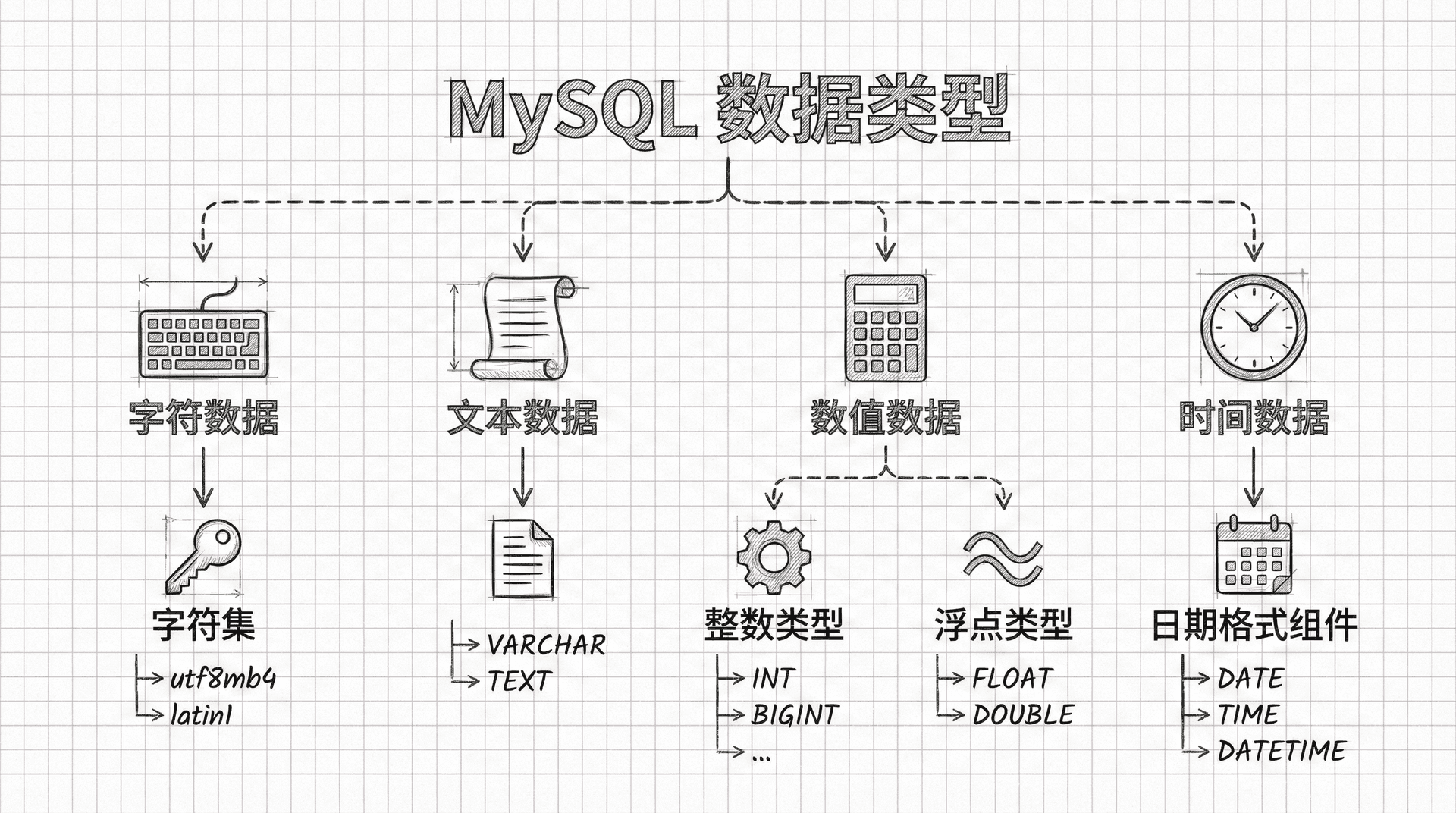 在创建数据库表之前,我们需要深入了解 MySQL 支持的各种数据类型。虽然所有主流数据库都能存储相同类型的基本数据(如字符串、日期和数字),但它们在特殊数据类型上往往有所差异。 对于初学者来说,掌握字符、数值和时间这三种基本数据类型就足够了,因为它们占据了实际工作中 98% 的使用场景。