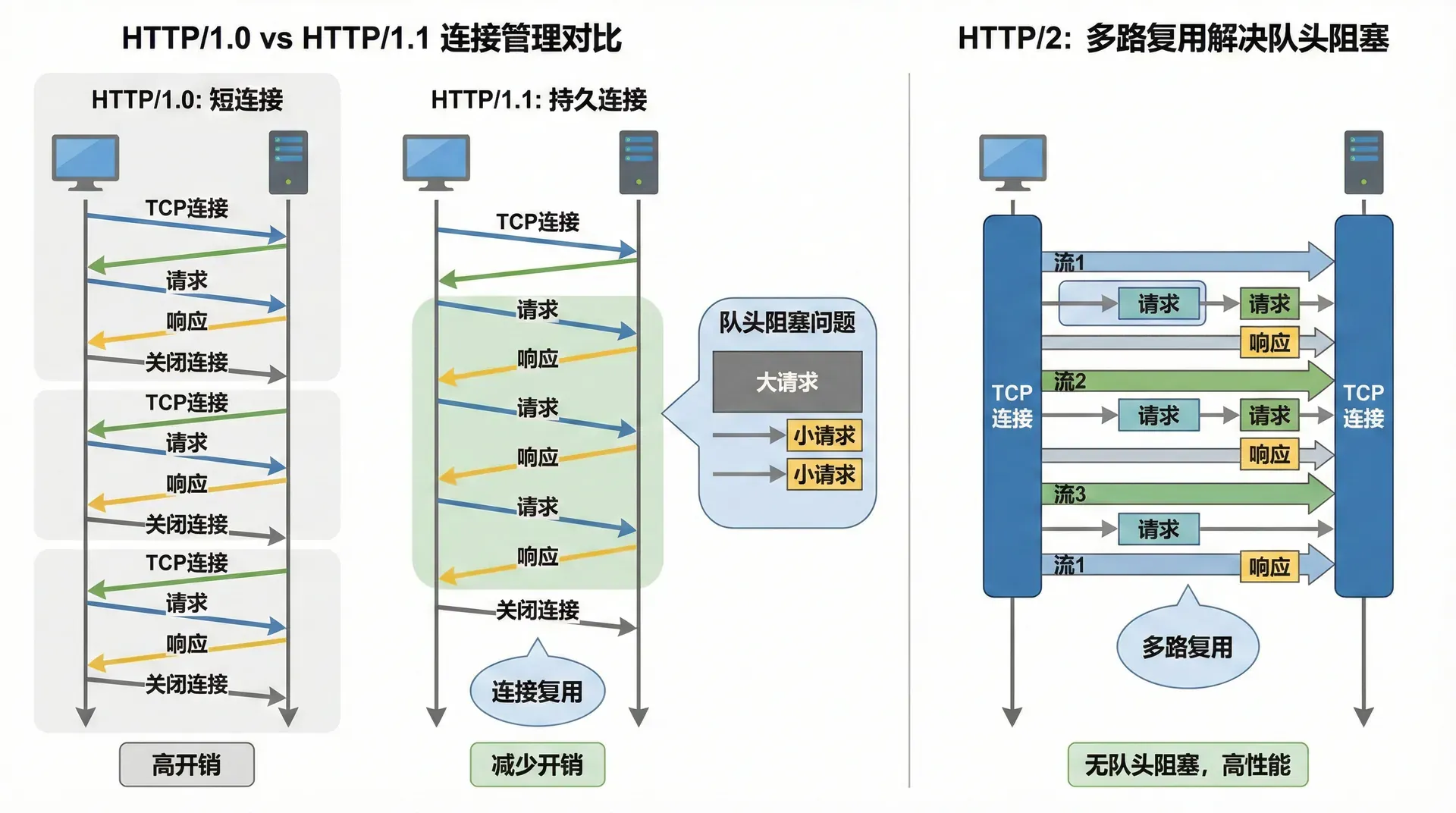 从早期的HTTP/1.0到如今的HTTP/2、HTTP/3,连接管理机制变得越来越先进,但核心目标其实没变:让用户用得更流畅、更安全。每一次技术进步,都是对更好互联网体验的追求。