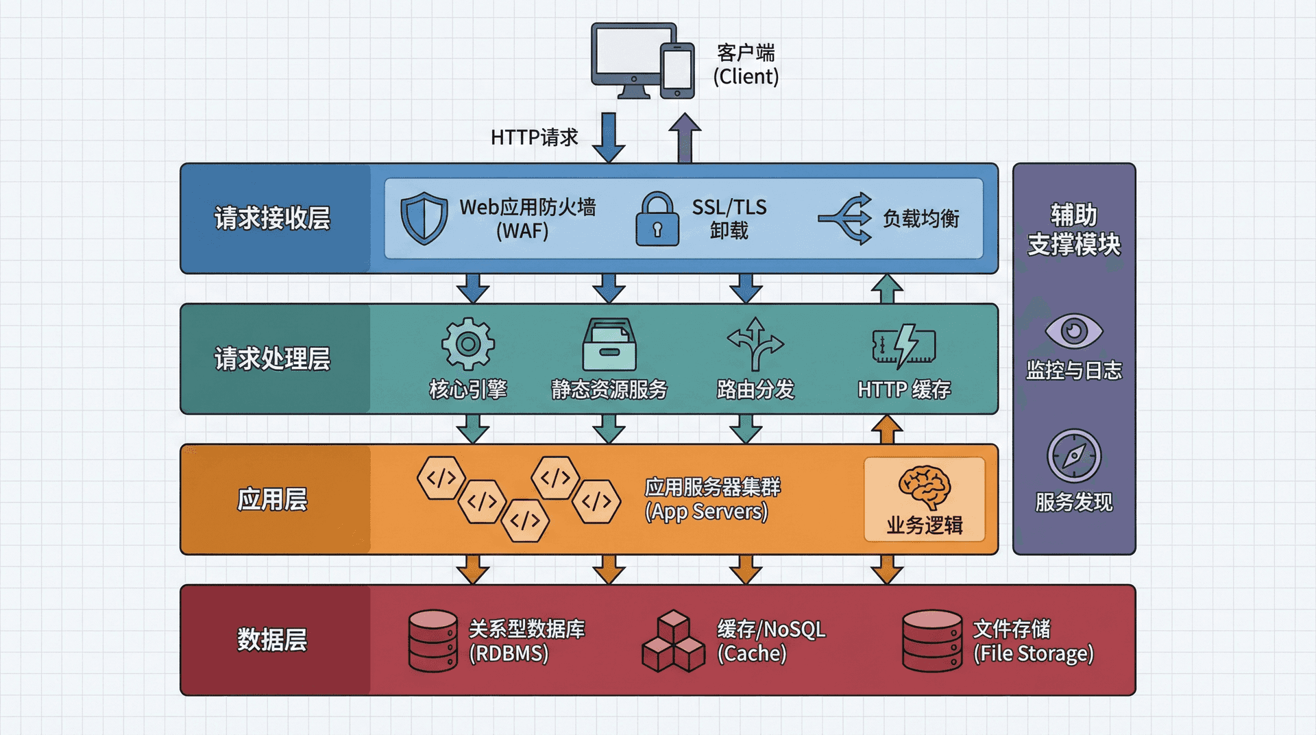 现代Web服务器还需要考虑多种因素,包括性能优化、安全配置、可扩展性、监控和日志等。性能优化涉及连接管理、请求处理、响应生成等多个方面。安全配置涉及SSL/TLS设置、访问控制、安全头配置等。可扩展性涉及负载均衡、集群部署、资源管理等。监控和日志涉及性能监控、错误追踪、安全审计等。