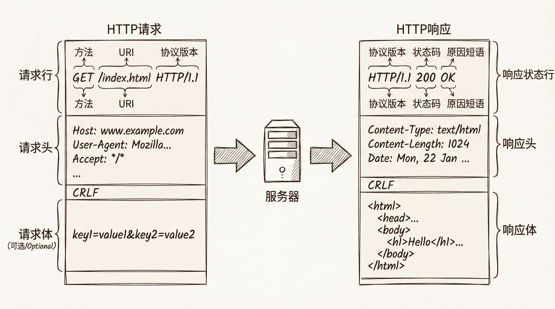 HTTP协议是基础,不理解HTTP,做不好渗透测试。HTTP协议是Web应用的基础,所有的Web应用都基于HTTP协议,如果不理解HTTP协议,就无法理解Web应用的工作原理,也就无法做好渗透测试。 请求和响应结构,每个部分都可能有问题。请求行、请求头、请求体,响应状态行、响应头、响应体,每个部分都可能存在安全问题,都需要仔细分析。