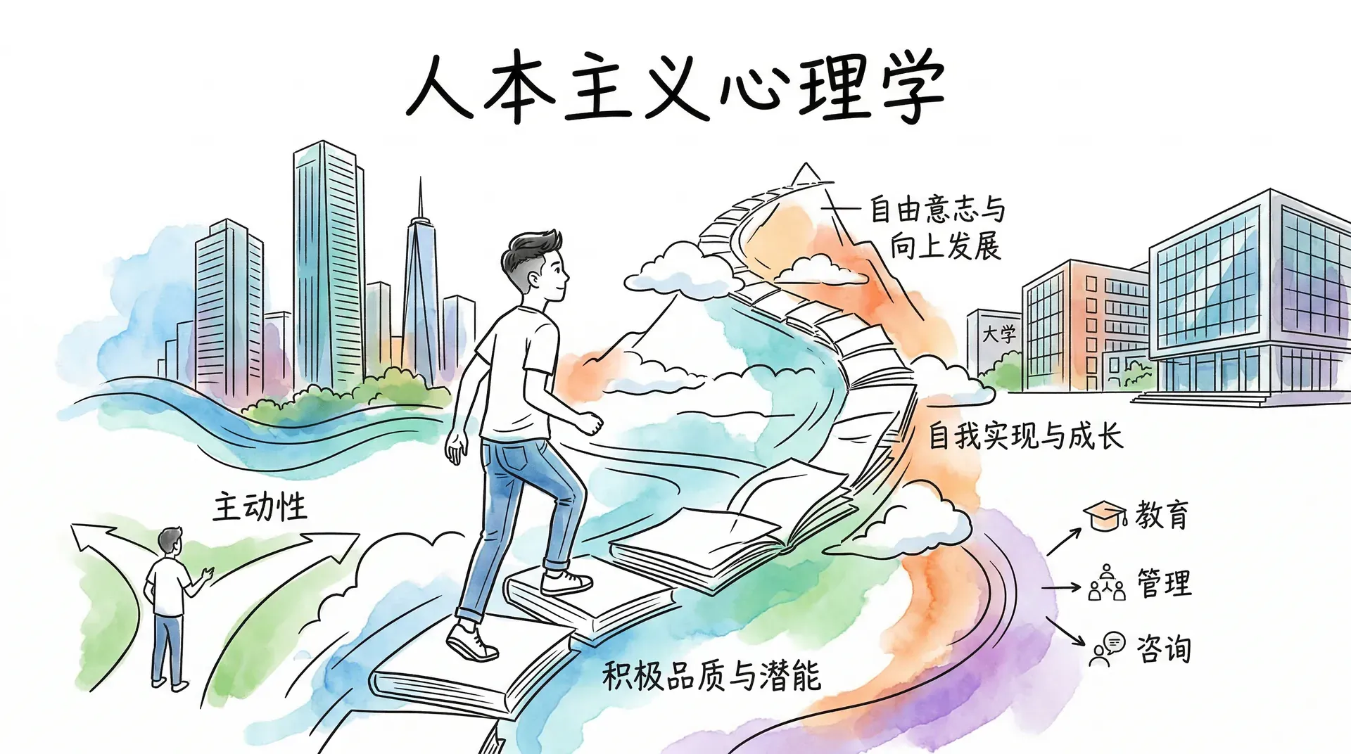 20世纪中叶,行为主义和精神分析学派各自发展,但两者有一个共同点:都把人看作被动的存在,或被环境塑造,或被无意识驱动。正是在这样的背景下,被称为心理学“第三势力”的人本主义心理学在美国兴起。人本主义心理学将焦点转向了人类的积极品质和成长潜能,坚信每个人都有追求自我实现和成长的内在动力,强调人是主动的、有自由意志的、向上发展的存在。这一转向不仅改变了心理学的研究重心,更深刻影响了教育、管理、咨询等诸多实践领域。
