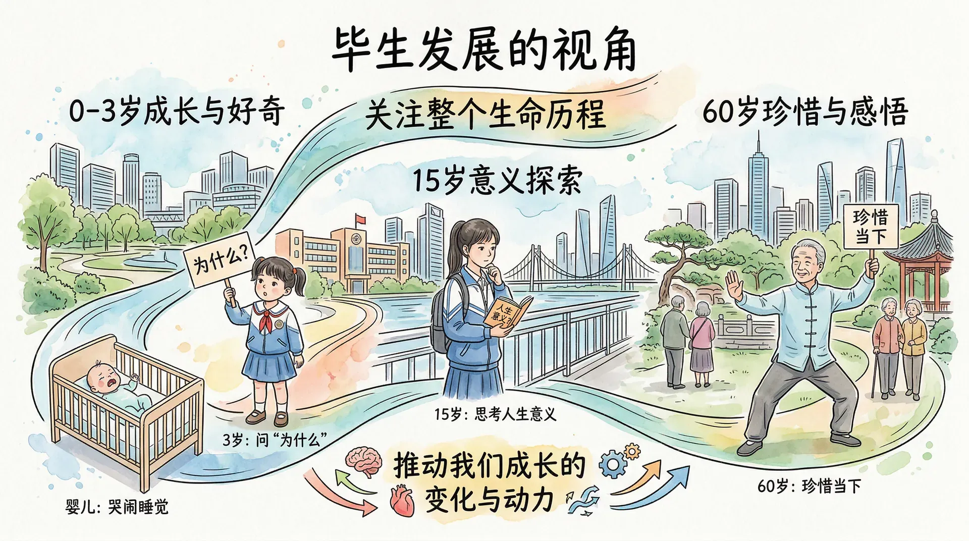刚出生的婴儿只会哭闹和睡觉,三岁的孩子开始问“为什么”,十五岁的少年思考人生的意义,六十岁的老人更懂得珍惜当下。这些变化如何发生?是什么力量推动我们从无知的婴儿成长为智慧的长者?