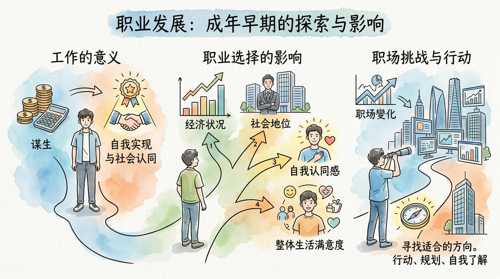 工作不仅是谋生的手段,也是自我实现和社会认同的重要来源。成年早期的职业选择和发展轨迹,将直接影响一个人的经济状况、社会地位、自我认同感和整体生活满意度。面对充满变化的职场环境,如何找到适合自己的方向,成为许多年轻人共同面临的挑战。