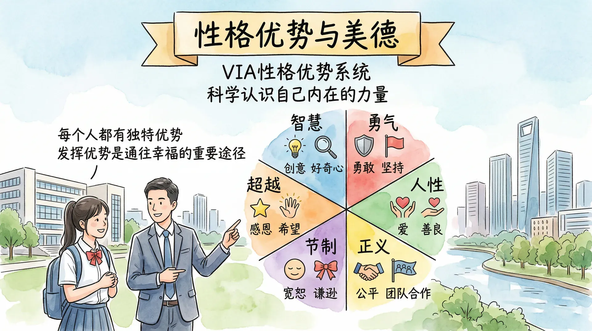 6大美德涵盖了人类最核心的积极品质,每一种美德之下又细分为若干具体的性格优势。
