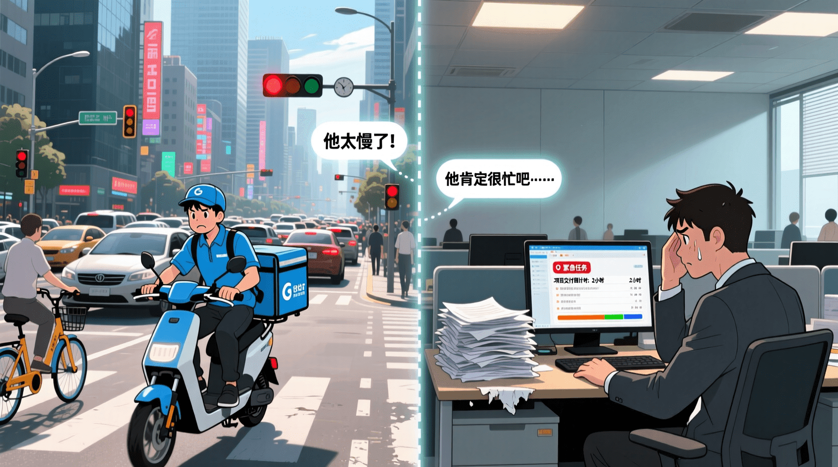 外卖员迟到时,我们可能认为他不负责,而忽视了交通拥堵、订单太多等情境因素。同事工作出错时,我们可能认为他能力不足,而忽视了任务难度和时间压力。