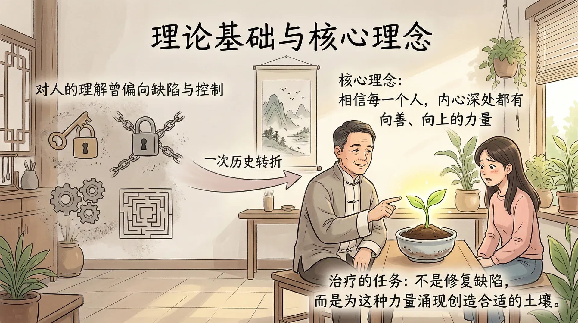 在心理咨询与治疗的历史进程中,人本主义疗法的出现是一次真正意义上的转折。这一疗法的奠基者卡尔·罗杰斯并不满足于当时精神分析和行为主义对人的理解方式,他相信每一个人内心深处都有向善、向上的力量,而治疗的真正任务不是修复缺陷,而是为这种力量的涌现创造合适的土壤。