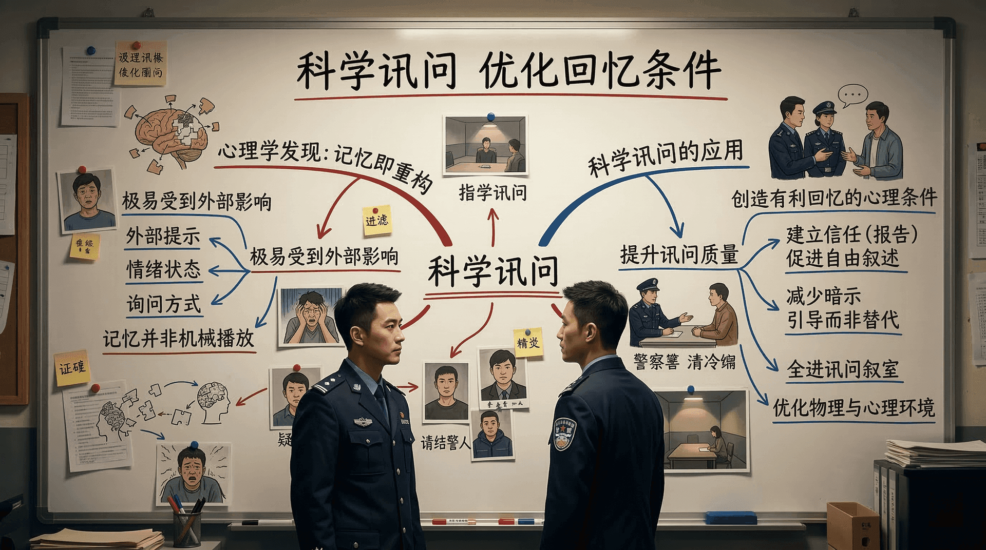 心理学研究表明,记忆的提取并非机械的播放过程,而是一种主动的重构行为,极易受到外部提示、情绪状态和询问方式的影响。因此,讯问的质量在很大程度上取决于能否为被询问者创造有利于回忆的心理条件。