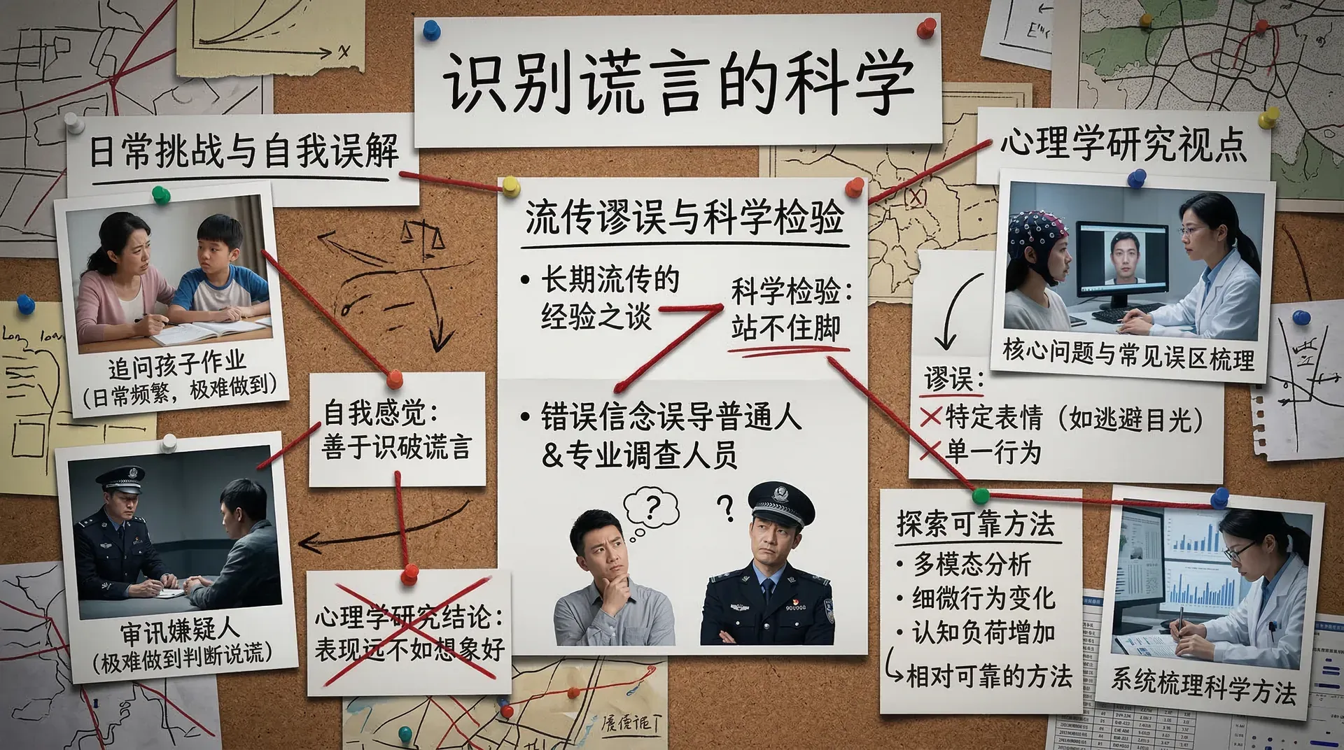 在刑事调查领域,各种关于说谎行为特征的理论长期流传,并被许多从业者视为经验之谈。然而,当这些理论接受科学检验时,大多数都站不住脚。更值得警惕的是,这些错误信念并非只存在于普通人之中,连许多专业调查人员也深受其误导。本章将从心理学研究的角度,系统梳理谎言识别的核心问题、常见误区以及相对可靠的方法。