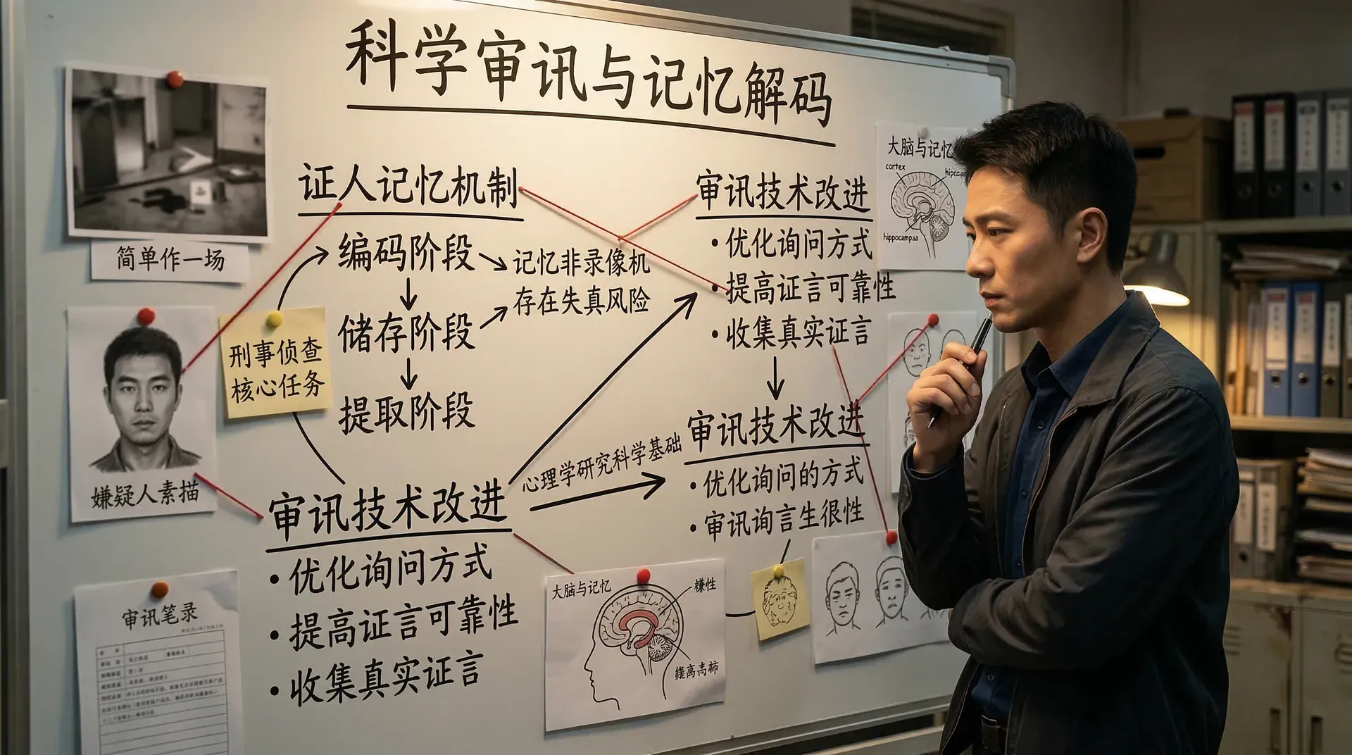 收集真实可靠的证言是刑事侦查的核心任务之一。人的记忆并不像录像机那样忠实地记录每一个细节,它在编码、储存和提取的每个阶段都可能发生失真。心理学家对记忆机制的深入研究,为审讯技术和证人询问方式的改进提供了科学基础。