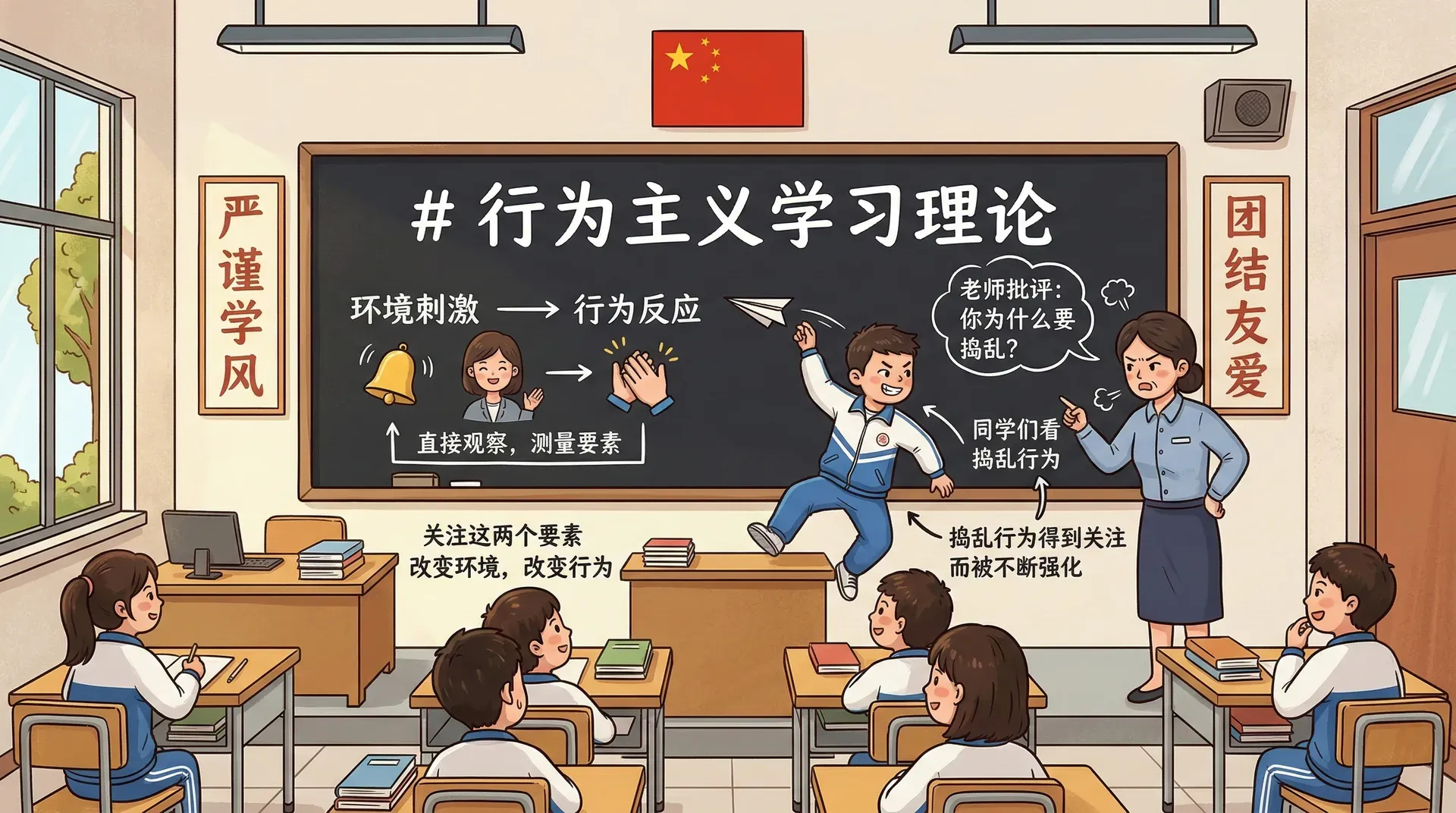 课堂里不难见到这样的情形:某个学生上课时扔纸飞机、大声说话,甚至故意拍同桌的肩膀。每当他这样做,老师立刻把目光投向他,同学们也纷纷回头。老师的反应是批评,但这个学生不仅没有收敛,反而愈发起劲。这背后的道理,正是行为主义学习理论所要解释的:他的问题行为,恰恰因为得到了关注而被不断强化。