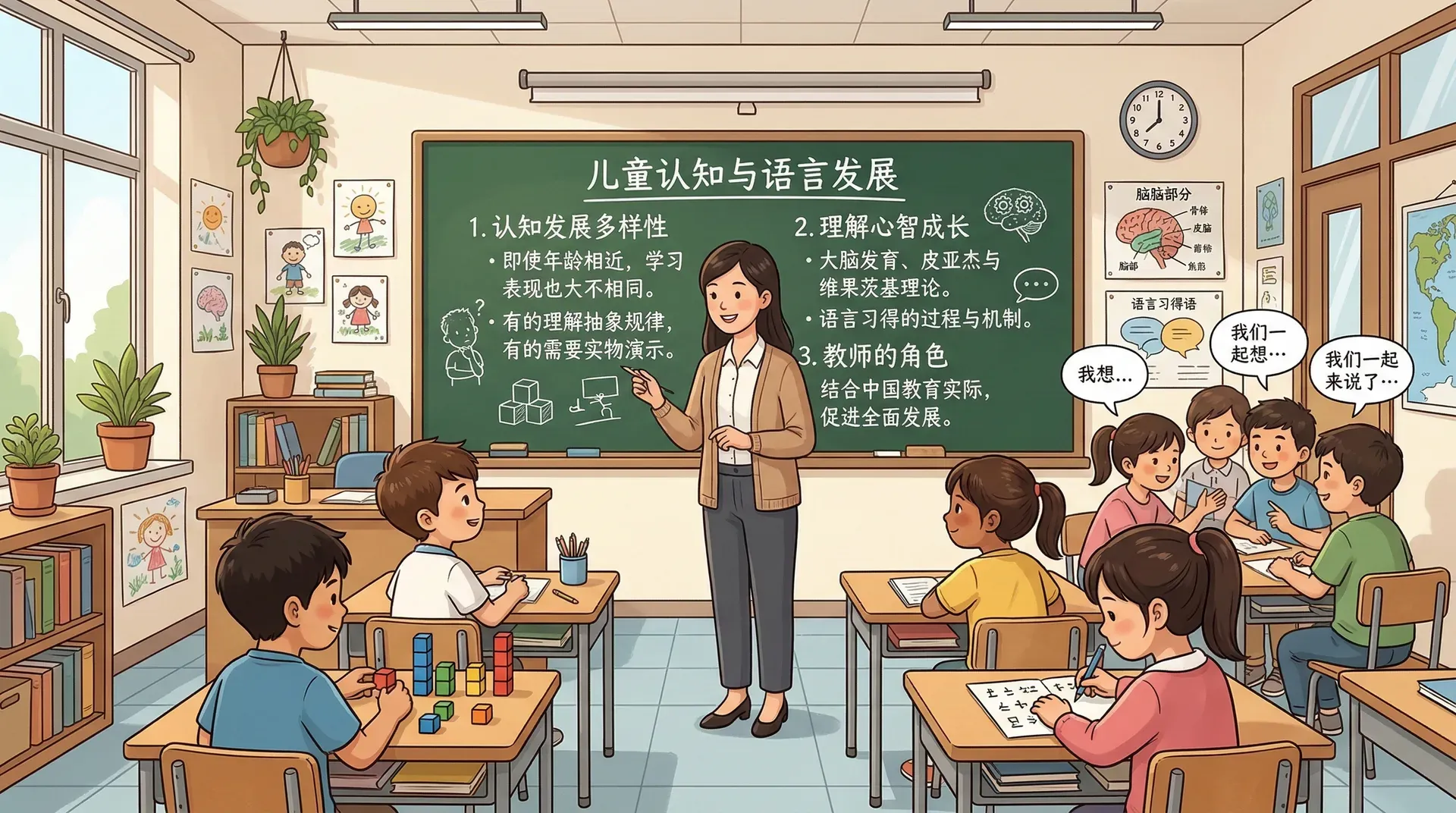 理解儿童如何认知世界、如何习得语言,是每一位教育者的基本功。本章从发展的基本规律出发,依次讨论大脑发育的生理基础、皮亚杰与维果茨基的两大认知理论、语言习得的过程与机制,并结合中国教育的实际情境,为教师理解学生的心智成长提供有据可查的理论支撑。